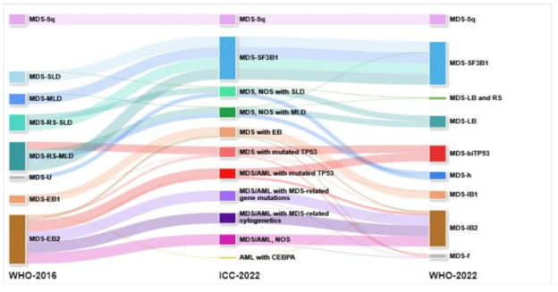 Myelodysplastic syndromes (MDS) are a group of blood disorders that affects the bone marrow, which is the soft inner part of the bones that produces blood cells. In MDS, the bone marrow produces abnormal or immature blood cells that are unable to perform their normal functions, leading to a reduction in the number of healthy red blood cells, white blood cells, and platelets. This can result in anaemia (low red blood cell count), infections, easy bruising or bleeding, and fatigue.