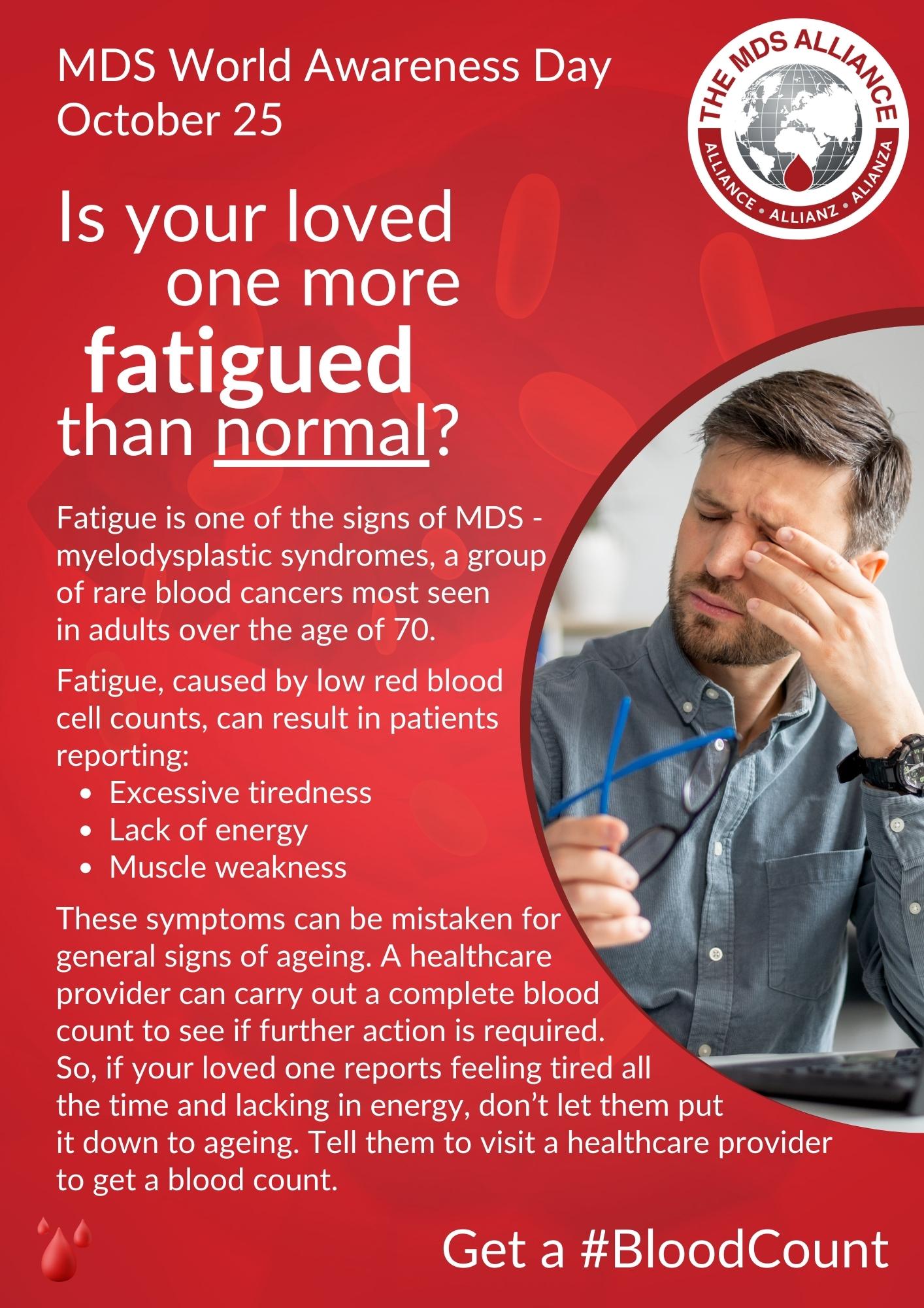 This year, we are raising awareness of the MDS symptoms as their early recognition can help to get a timely diagnosis and appropriate care and treatment. We address both the members of the public experiencing the symptoms as well as their loved ones who might help to notice that it could be MDS and encourage to get a blood test.