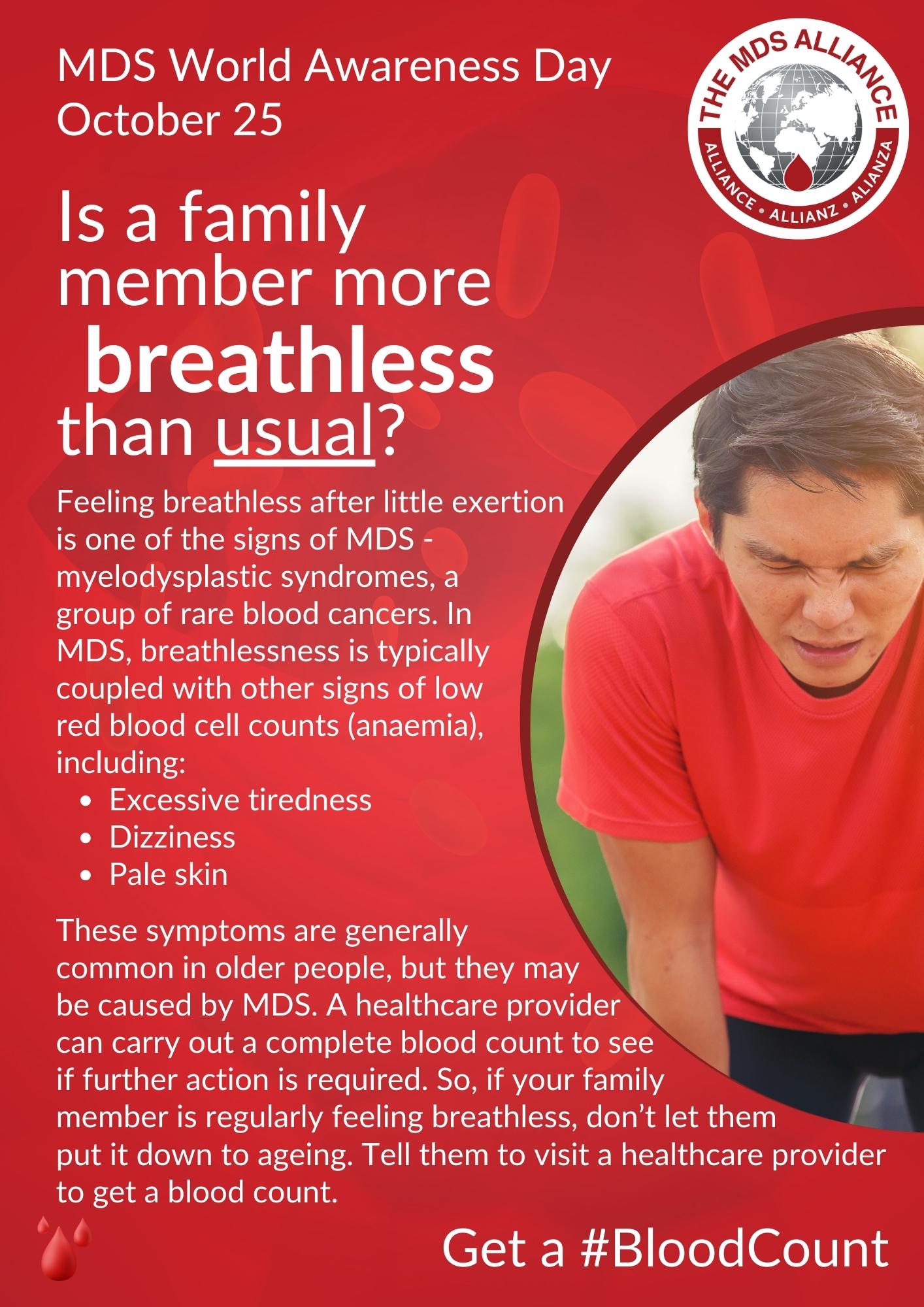 Every year on October 25, the MDS Alliance and its member groups around the world come together to raise awareness of Myelodysplastic Syndromes (MDS) – a type of rare blood cancer where the bone marrow does not produce enough healthy blood cells.